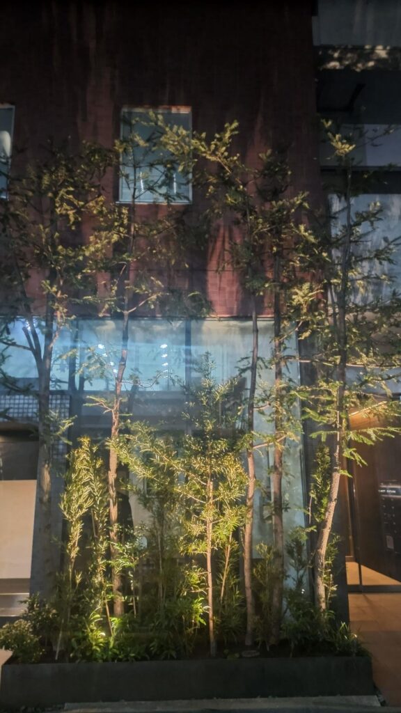 日本橋にある和装小物を扱う老舗企業の植栽ライトアップをリニューアル。