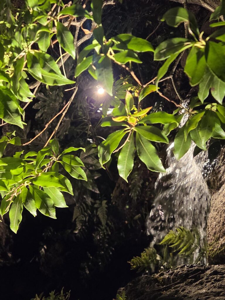 落葉した樹木を照らしていたスポットライトを常緑樹に向けてライティングを調整したり、この時期に咲く花にも光があたるように調整します。