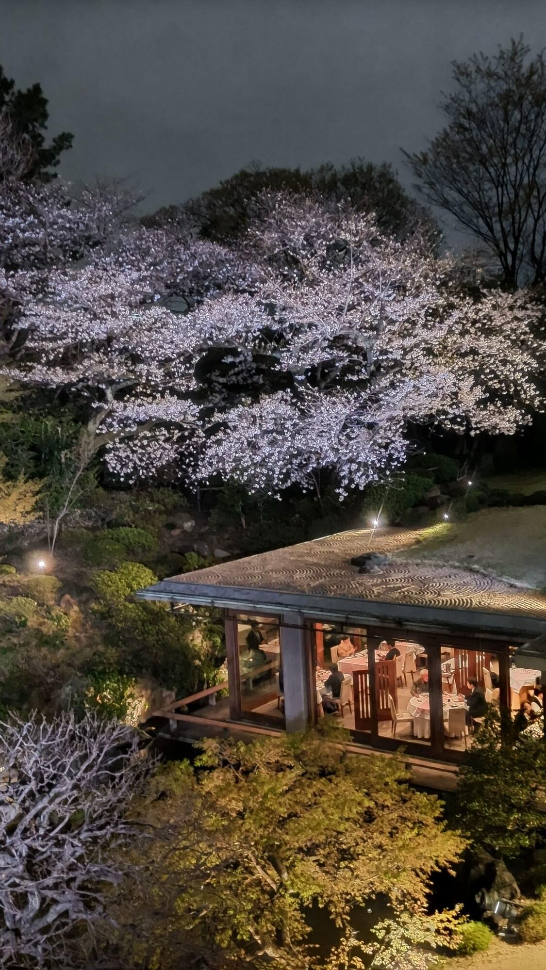 桜の花が優しい色あいに際立つ淡いラベンダーピンクの光でライティング。