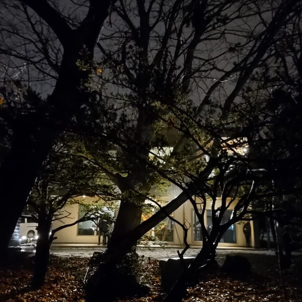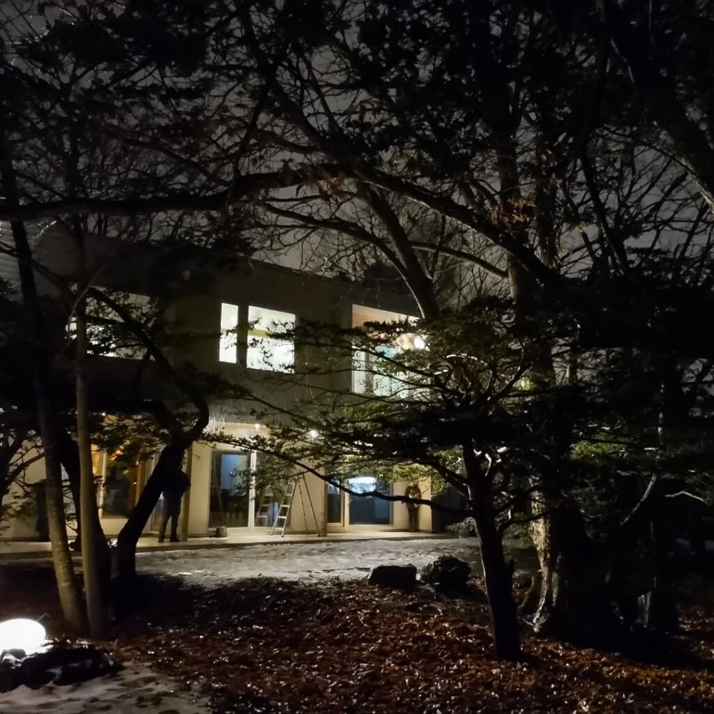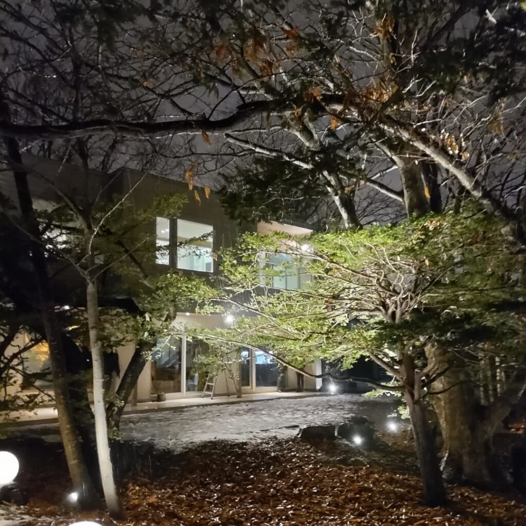 1400坪の広大な敷地にある庭園の建物側エリアをライトアップしました。
