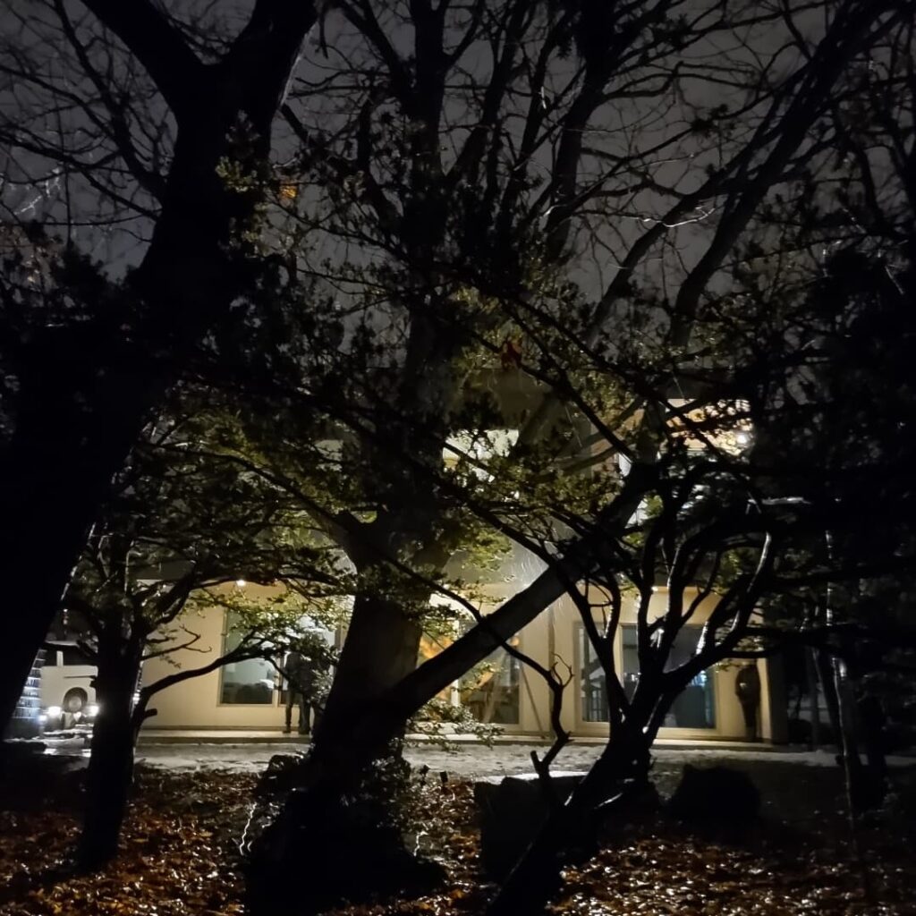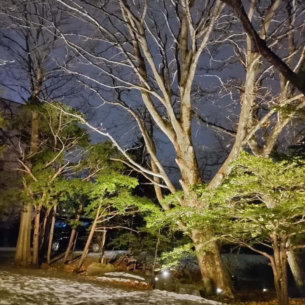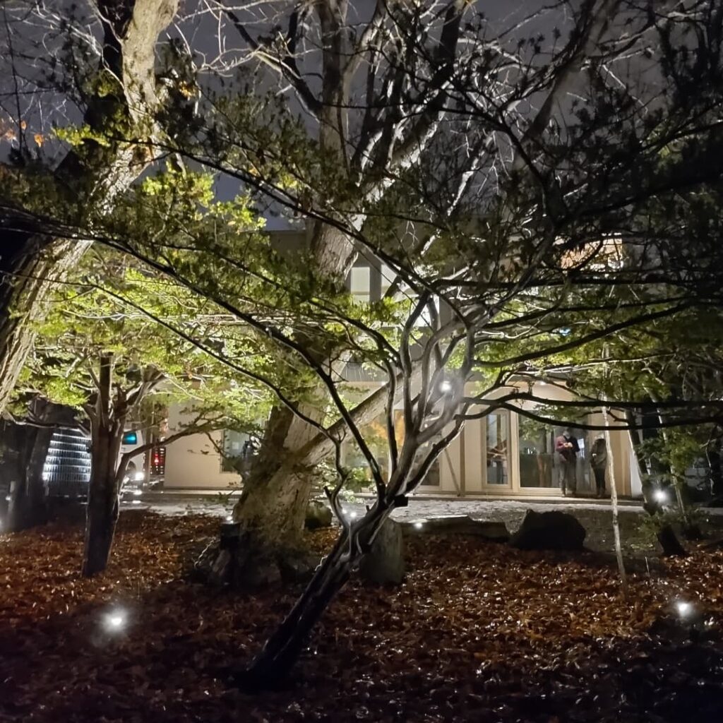 室内から夜の庭園を眺めながらくつろげるように、樹木を照らす照明は温かみのある3000K(ケルビン)の光で色温度を統一しています。