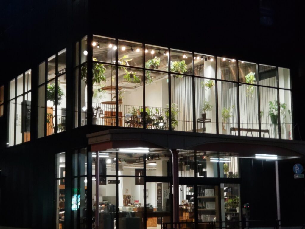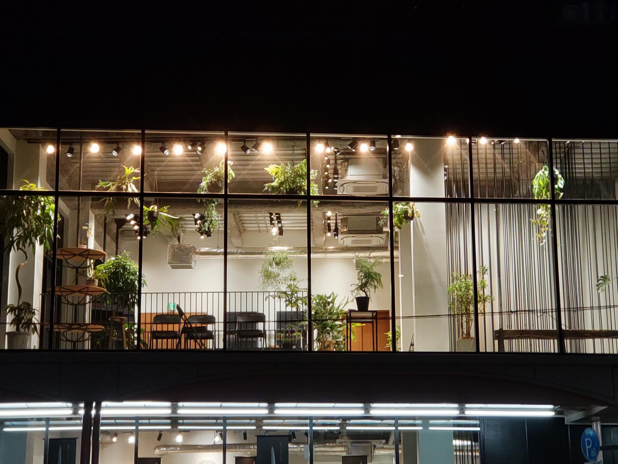 かっぱ橋道具街通りから見たときの視線も踏まえ、正面ガラス沿いに設置した照明を眩しさを感じない角度で敢えて通り側へ向けて、ウェルカムライトとしてきらめき感を演出しました。
