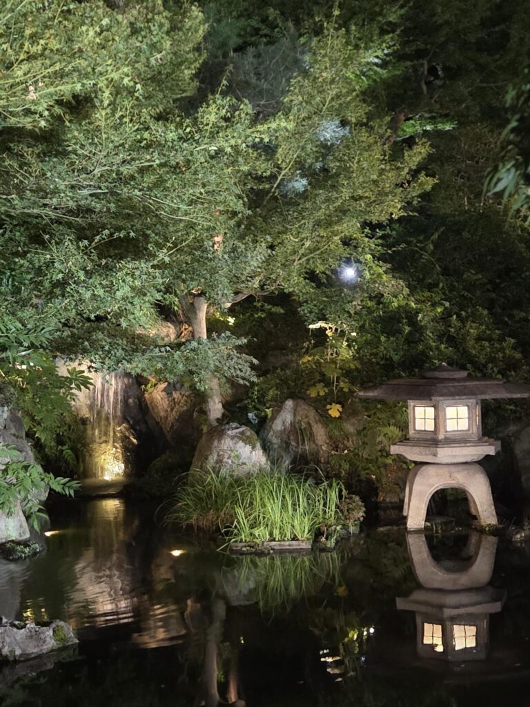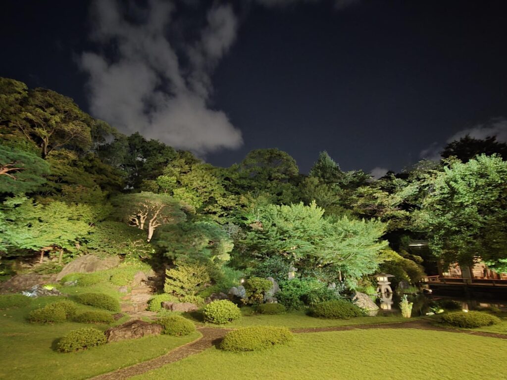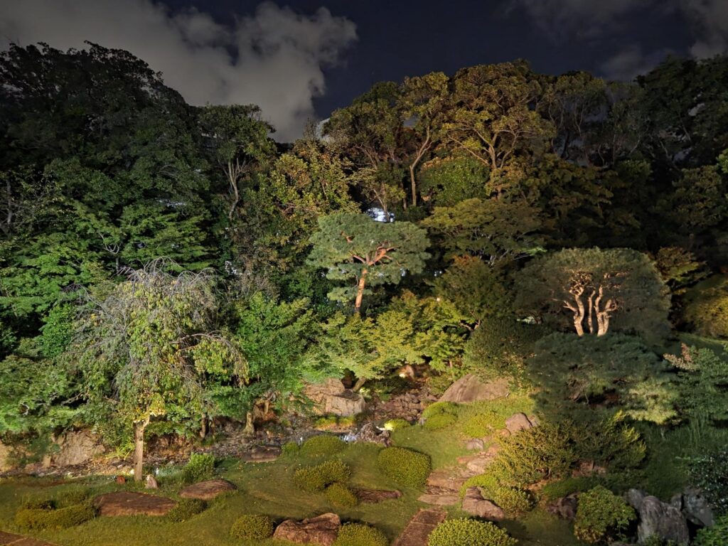 日中はもちろんですが、日が暮れてからも鮮やかな緑の風景を眺めながら美味しいお食事とお酒が楽しめるように。